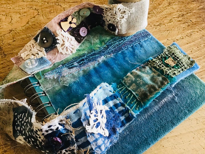 I make books for a living but in January I like to make some books for myself. This year will be slightly different as I have a handmade book portfolio project in my Patreon group and a brand new book project - Fragmented Stories - about to start in my paid Substack ‘Book Artist Studio’ so I will be leaning into those places for inspiration. Making books for yourself that you can spend the rest of the year filling is to be recommended. I do buy notebooks and sketchbooks but nothing quite touches my own books. My books have different purposes. Some are simple notebooks, some hold my stitching, some my art journal pages and some are just a place to explore new ideas. I have the luxury of time in January and February that I don’t have any other time of the year.
