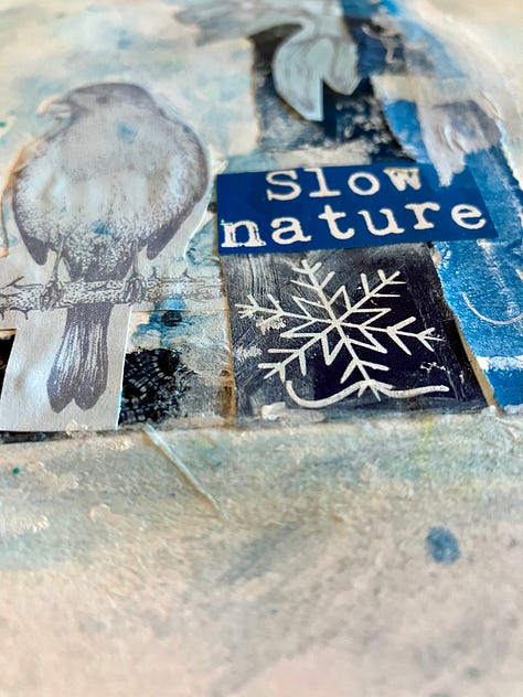 I art journal throughout the year but I have more time in the winter and so I have more winter inspired pages than other seasons. Creating art journal pages inspired by the seasons is joyful as it places your creativity deep within the season you are inhabiting. I run a seasonal art journaling group on the island and we also engage in this exercise in my Patreon community. In 2026 I would like to offer a seasonal art journaling pop up online class so it is on my list to see if I can fit it in. Do let me know if you would be interested.